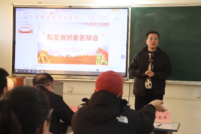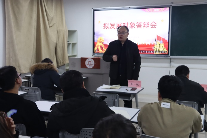 党员发展工作为党组织提供新鲜血液,是党员队伍建设的重要组成部分,为充分发挥基层党支部的战斗堡垒作用,做好党员发展和教育工作,11月29日,太阳成集团tyc122cc员工党支部在1号教学楼208教室组织召开员工拟发展对象汇报答辩会。公司党总支书记王斌、员工党支部书记韩亚平、辅导员老师祁琦参加答辩会,56名员工拟发展对象依次进行汇报答辩。