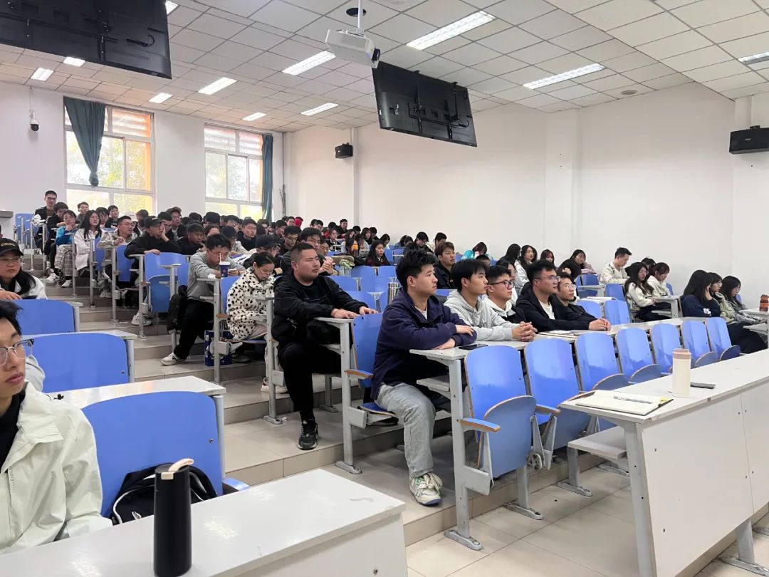 为帮助2025届同学了解当前的就业形势和考研趋势,太阳成集团tyc122cc特联合文都教育于10月10日下午在5号教学楼201开展“2025届就业形势与研究生备考规划分享会”。分享会特邀请到文都教育全国巡讲师、老员工职业生涯规划资深导师、考研资深指导专家马回峰老师为大家讲授,公司党总支书记王斌出席并为大家做职业生涯规划指导,辅导员祁琦组织2021级180余名同学参加了本次讲座。