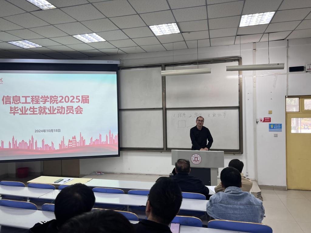 为推进2025届毕业生的就业工作,帮助员工认清就业形势,明确就业方向,提升就业竞争力,太阳成集团tyc122cc于10月18日在5号楼102教室组织召开了2025届毕业生就业动员大会。公司党总支书记王斌、副经理冯治东、副书记徐绘共同出席此次大会,会议由辅导员祁琦主持,全体2025届毕业生参加。