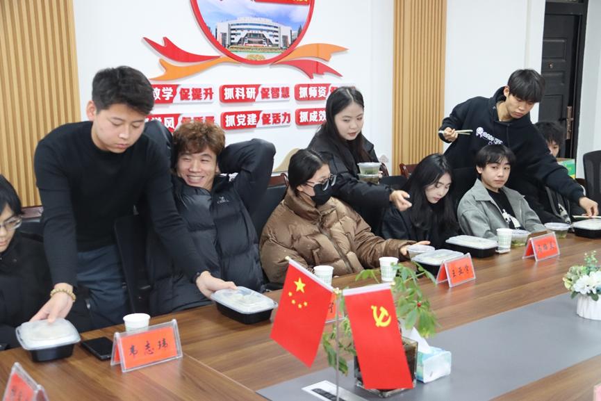 在轻松愉快的氛围中,座谈会还安排了品尝饺子的环节。饺子作为冬至的传统食物,象征着团圆和幸福。师生们围坐在一起,共同品尝了热腾腾、香喷喷的饺子,不仅体验了中国传统节日的习俗,更拉近了师生之间的情感距离。