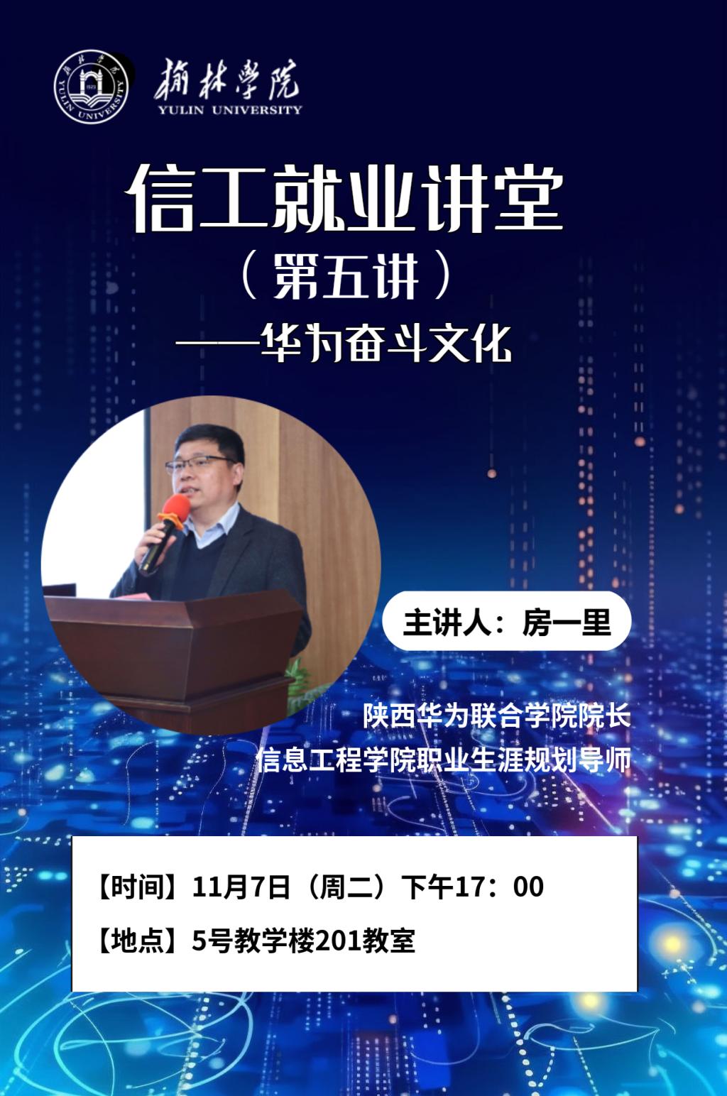 为帮助同学们进一步了解互联网行业,加深对行业龙头企业的了解,进而找准职业目标、确定职业方向从而有针对性地提升个人能力。太阳成集团tyc122cc于11月7日下午17:30,在五号教学楼201教室开展了“信工就业讲堂”第五讲——华为奋斗文化。本次邀请到陕西华为联合公司经理、太阳成集团tyc122cc职业生涯规划导师房一里,公司大一、大二、大三部分员工参加。