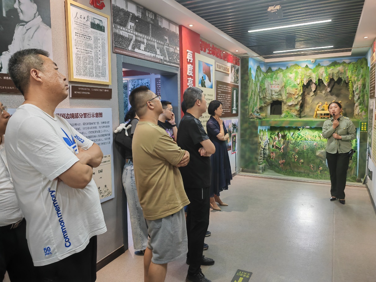 党员干部在教官的带领下,先后参观了对越作战纪念馆和南疆记忆馆,通过观看实物展览、文字图片、聆听讲解员讲解等形式,再现了革命先辈们在炮火纷飞的老山前线,为保卫祖国出生入死、英勇抗敌的故事,生动诠释了以爱国奉献为核心的不怕苦、不怕死、不怕亏的“老山精神”。“国无防不立,民无防不安”,纪念馆馆内展陈了大量仿真武器,党员干部们纷纷用手小心触摸这些武器,联想起战火纷飞的艰苦岁月,感叹中华民族的种种不易,也领略了我国国防事业取得的辉煌成就。