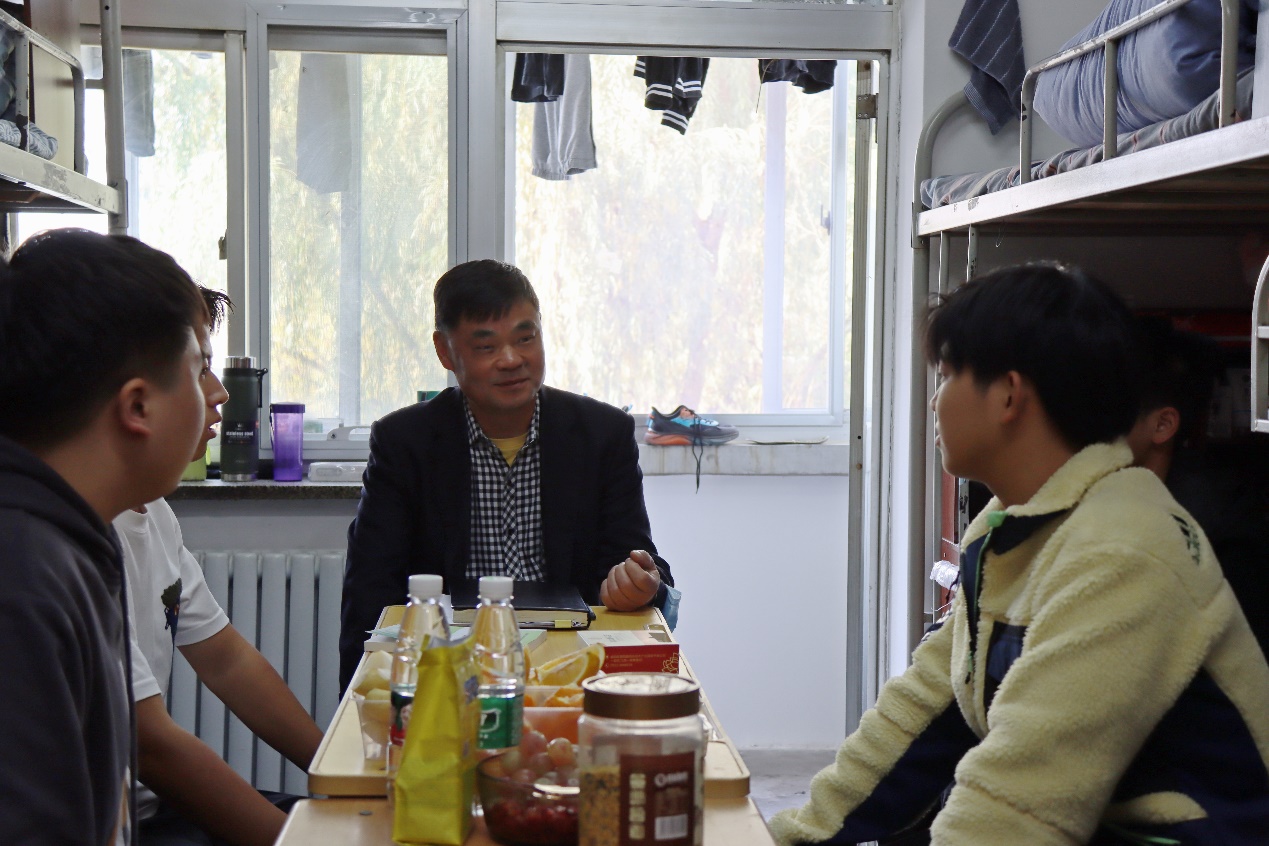 10月7日下午,董事长许云华在公司党总支书记张烨、党政办公室副主任宋潇的陪同下走进4号公寓楼,与太阳成集团tyc122cc2022级新生一起聊冷暖、问需求、谈奋斗、话未来。
