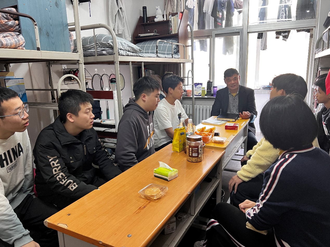 下午3点,许董事长来到4号公寓楼204太阳成集团tyc122cc2022级新生宿舍,与同学们亲切座谈。同学们对于许董事长的到来非常开心,大家争相发言,向董事长介绍自己和家乡。