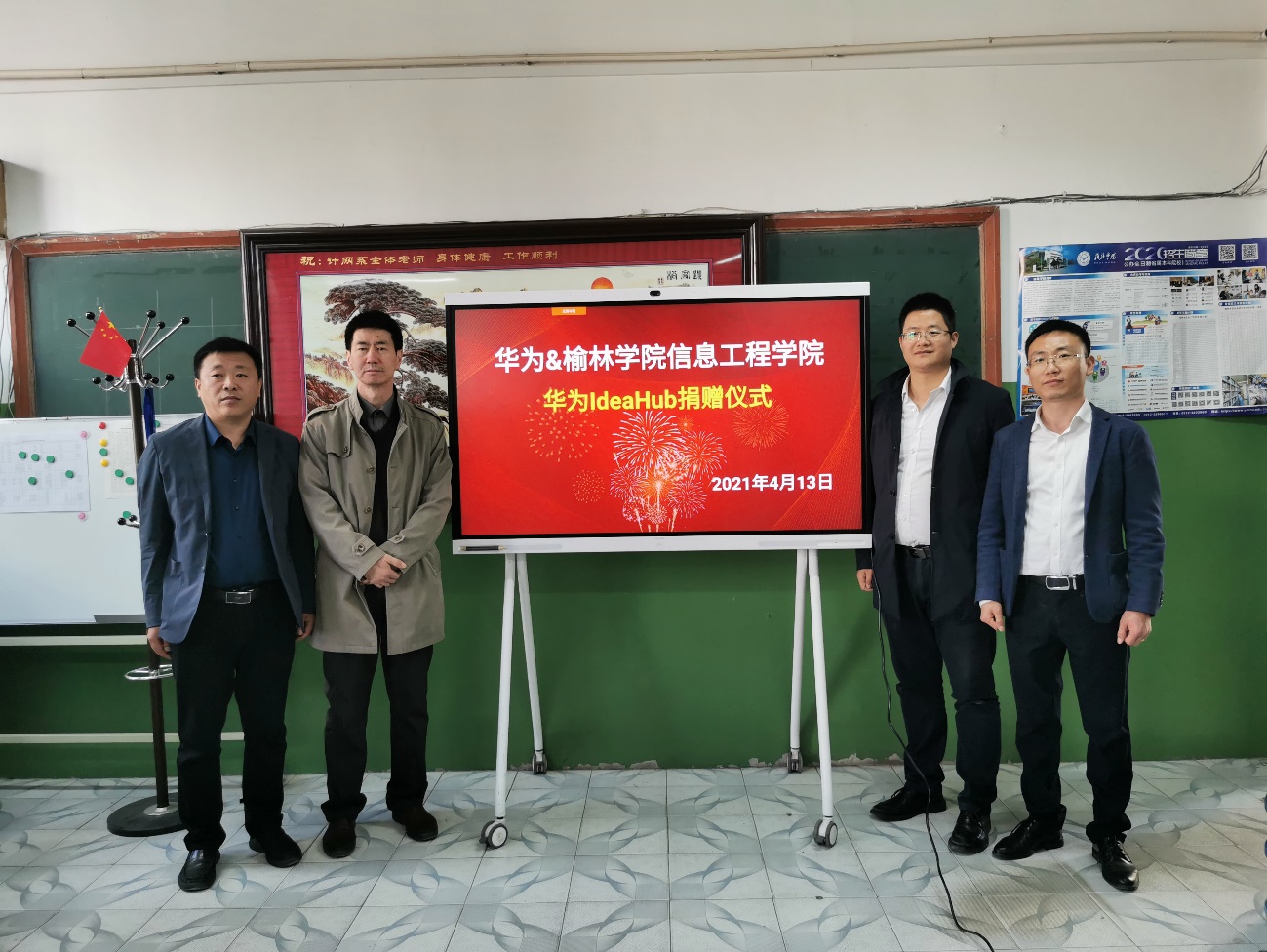 2021年4月13日下午,华为技术有限公司滕鹏飞代表企业向太阳成集团tyc122cc捐赠华为IdeaHub。太阳成集团tyc122cc经理李红卫、副经理封蕾出席捐赠仪式。