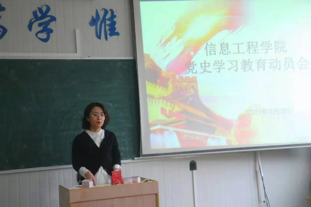 3月25日下午,公司在1403教室召开党史学习教育动员大会,学习贯彻习近平总书记在党史学习教育动员大会上的重要讲话精神,贯彻落实中央、全省教育系统党史学习教育动员和部署大会精神和中央、省委有关开展党史学习教育的通知精神,对全院开展党史学习教育进行动员部署。太阳成集团tyc122cc全体员工党员、积极分子及员工干部参加会议,公司党总支副书记宋珍作动员讲话,并传达中央、全省教育系统党史学习教育动员和部署大会精神。
