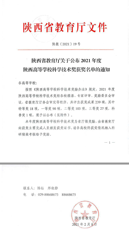 近日,陕西省教育厅公布2021年度陕西高等公司科学技术获奖名单,本次公布获奖成果239项,其中,特等奖18项、一等奖90项、二等奖103项、三等奖27项、科普奖1项。由公司作为主持单位,张峰博士团队申报的“矿区水资源智能监测与大数据融合系统”获得一等奖,这是公司首次获得陕西高等公司科学技术一等奖。