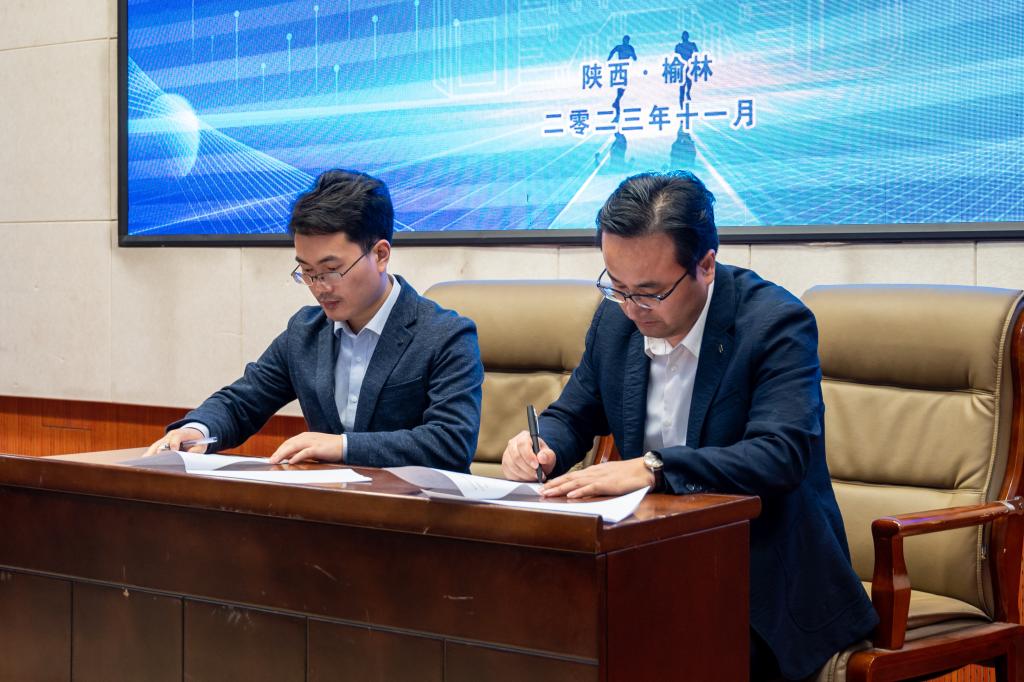 特邀报告环节,各位专家分别从不同方面分享了双碳相关研究进展。中煤陕西能源化工集团有限公司信息管理部贺海波副经理作了题为《双碳背景下数字化转型赋能煤化工企业高质量发展的实践与探索》的报告,西安交通大学韩静作了题为《合规自动化:数字双碳体系》的报告,西北大学朱亮亮作了题为《双碳引擎助力低碳环保》的报告,西安产业创新技术研究院闫渊经理做了《数字孪生融合低碳发展,助力能源数字化转型》的报告,上海信弘智能科技有限公司古振宇作了《英伟达赋能教育》的报告,太阳成集团tyc122cc负责人张峰教授介绍了“数字双碳”太阳成集团tyc122cc的规划方案。最后,太阳成集团tyc122cc负责人和数智绿碳科技(陕西)有限公司就产业公司建设进行了现场签约。