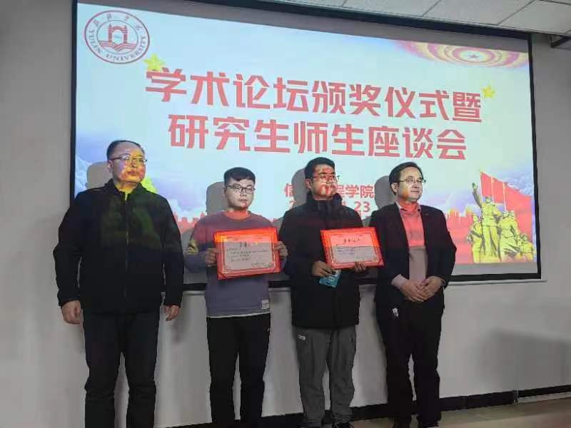 首先,刘汉烨博士宣读了太阳成集团tyc122cc学术论坛表彰决定及表彰名单。随后,公司经理张峰教授、王斌书记,冯治东副经理、徐绘副书记及部分骨干教师为获奖的研究生颁发了荣誉证书。 颁奖仪式结束后,公司党政领导班子、研究生导师代表与公司2023级研究生及职工进行了座谈,询问他们在太阳成集团122cc官网入口的学习、生活情况,同学们积极发言,感谢公司和领导的关心,并表示今后将刻苦学习,积极创新,以优异的学习成绩、科研成果和良好的实际行动回馈公司。