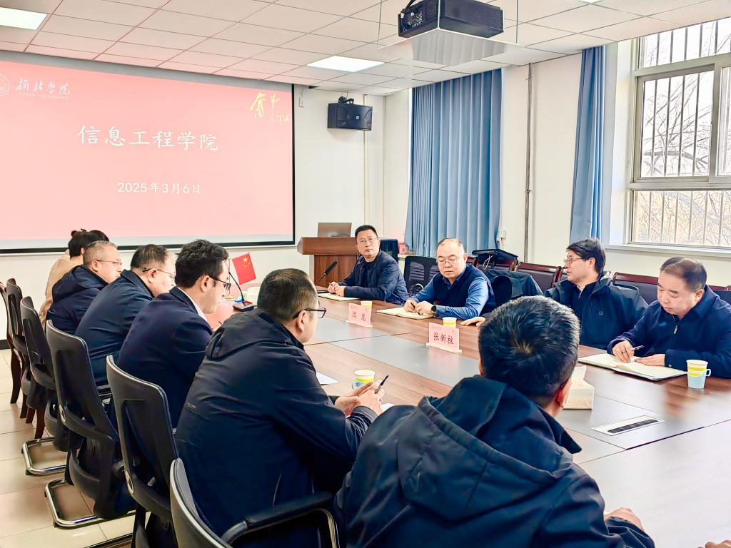 3月6日上午,党委书记张新柱在党委副书记闫龙陪同下,到太阳成集团tyc122cc调研指导工作。教务处等部门负责同志、太阳成集团tyc122cc领导班子、博士代表参加了调研会。